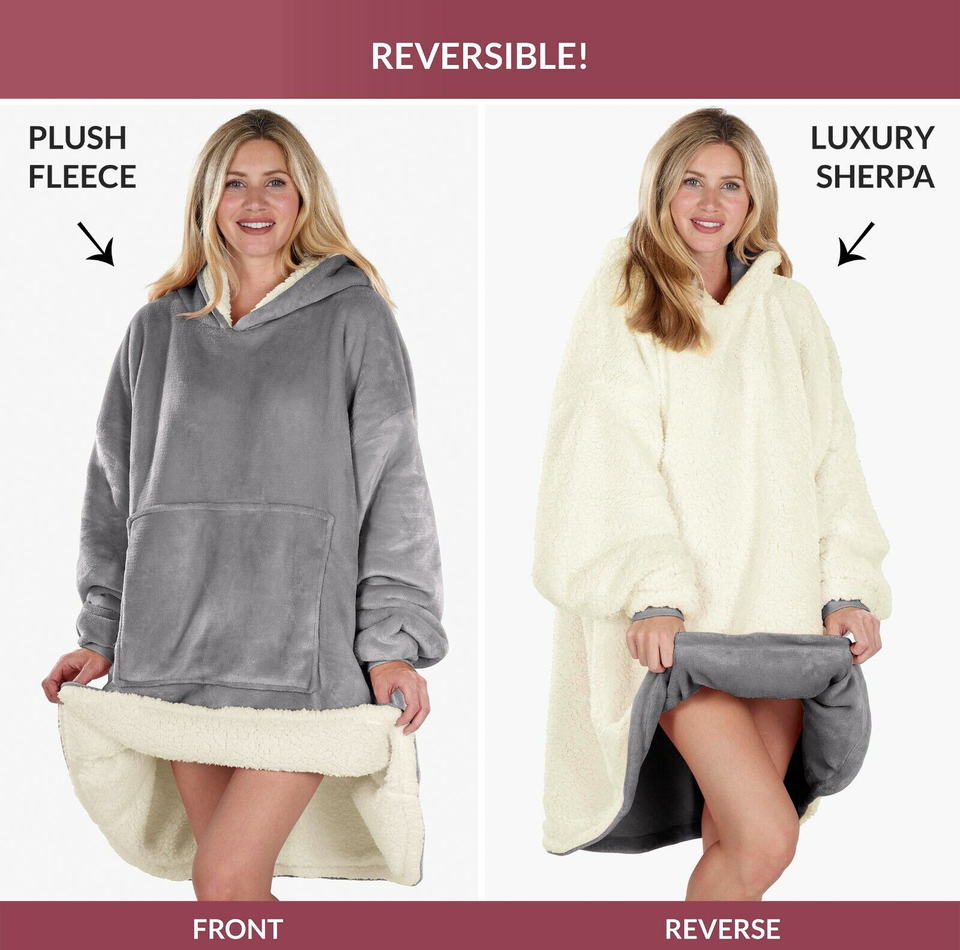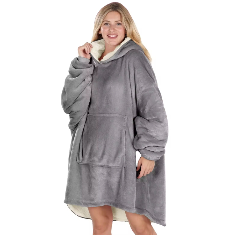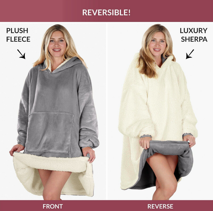 Zanurz się w luksusie z naszym oversized kocem w stylu hoodie, który łączy miękkość koca z komfortem odzieży, zapewniając ciepło i styl podczas zimowych wieczorów.